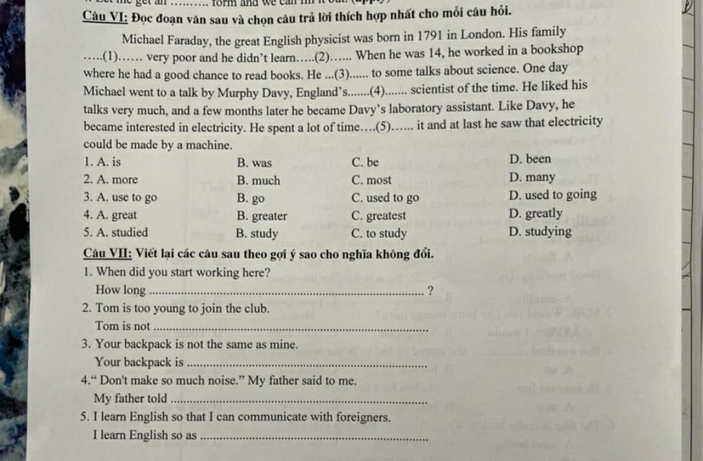 Câu VI: Đọc đoạn văn sau và chọn câu trả lời thích hợp nhất cho mỗi câu hỏi.