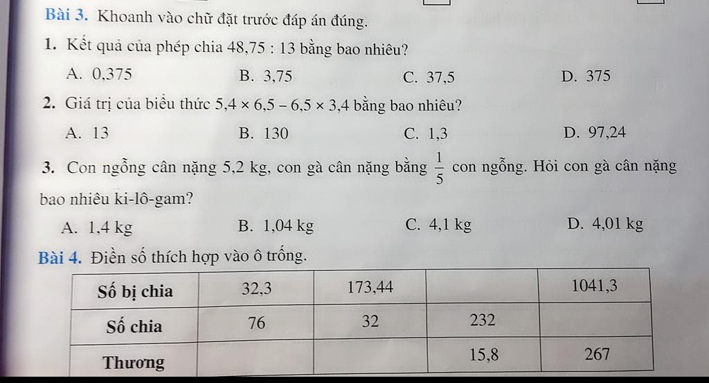 3. Con gà nặng: 5,2x1/5=1,04 kg