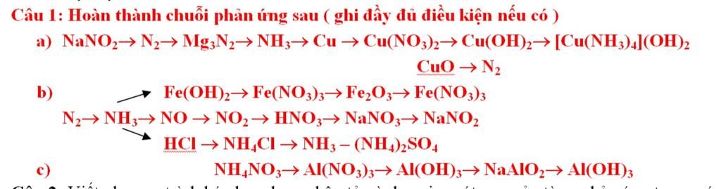 a) NaNO,→ N2→ Mg;N2→ NH3-→ Cu → Cu(NO3)2→CU(OH);→ [Cu(NH3)4](OH)2