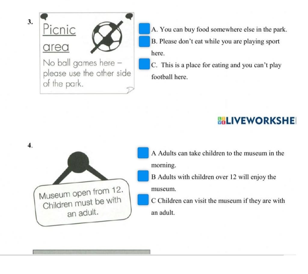 3 - C. This is a picnic area and you can't play football here.