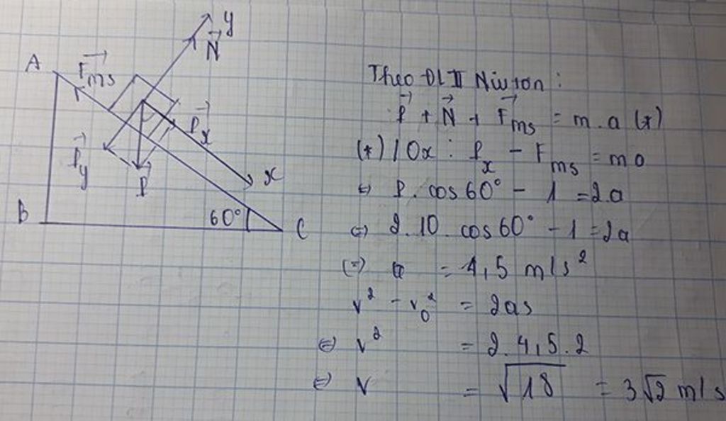 \[P.sin\alpha {\rm{ \;}} - {F_{ms}} = m.a = {\rm{ \;}} > a = \frac{{2.9,8.sin60 - 1}}{2} = 8m/s\]