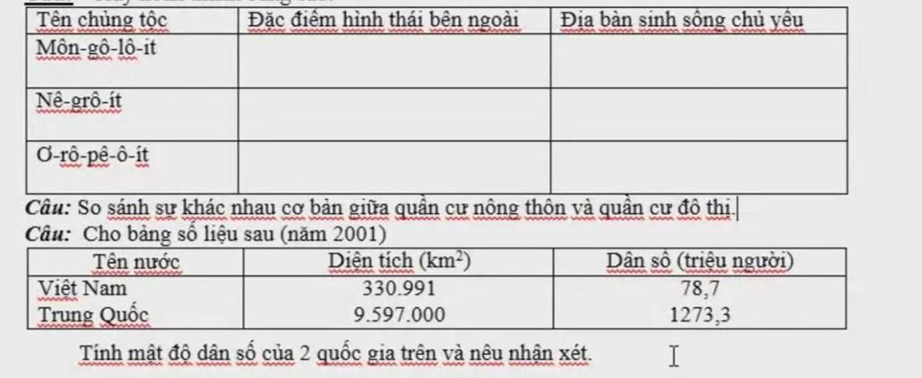 Nê-grô -it:hinh thái bên ngoài : tóc xoăn ,da đen, mắt đen ,to, mũi tẹt .sống chủ yếu ở châu phi