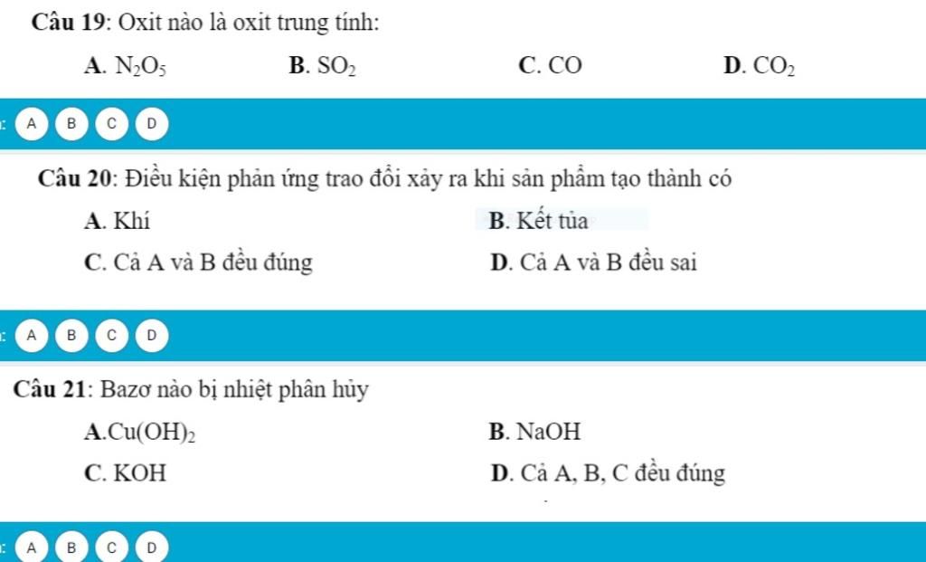 $\text{Câu 20) C. Cả A và B đều đúng}$