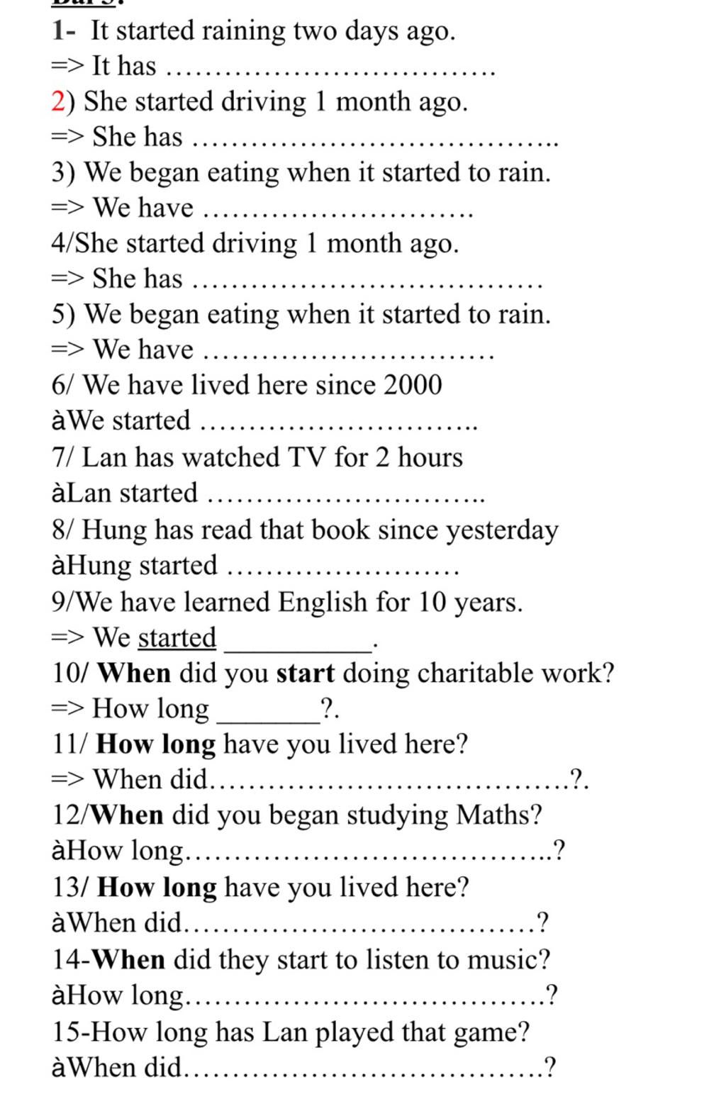 S+ started/ began +V-ing/ to V ║+ in / at ……..