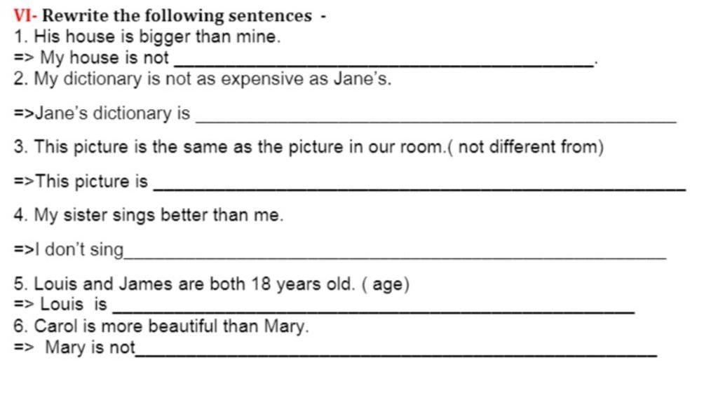 1.My house is as big as his house từ so sánh hơn thành só sánh bằng