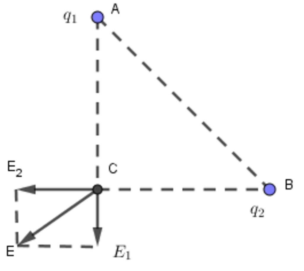 chị ơi cho em hỏi hình như q1<0, q2<0 thì vecto cường độ điện trường E phải hướng vào A và B chứ ạ?