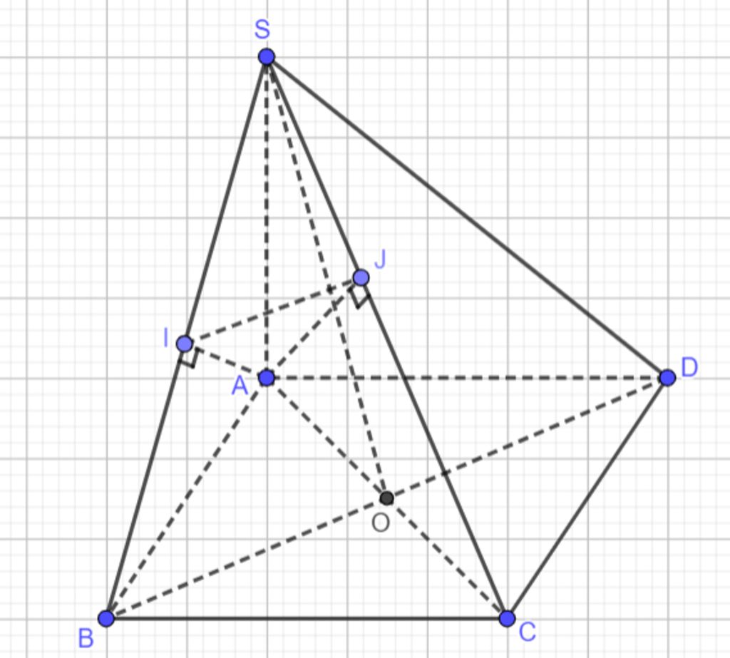 $\Rightarrow SB=SD\Rightarrow SBD$ cân đỉnh $S$ có $O$ là trung điểm của $BD$ nên $SO\bot BD$