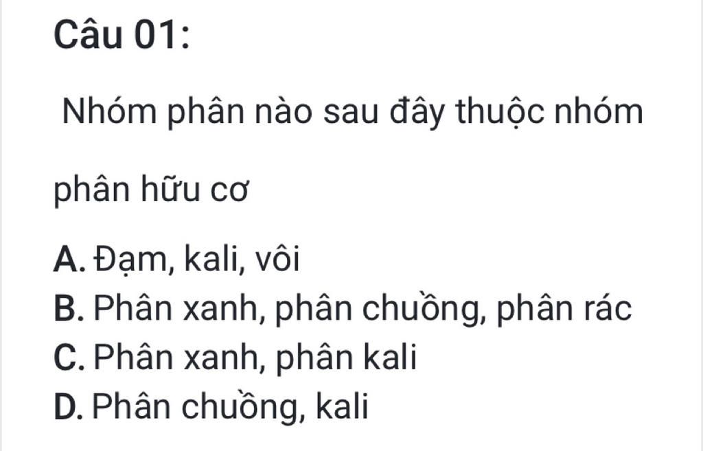 Câu 01: nhóm sau đây thuộc nhóm phân hữu cơ