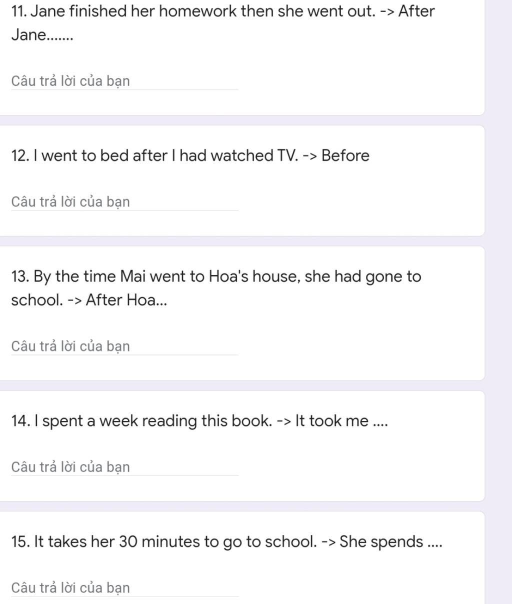 - Quá khứ hoàn thành: chỉ một việc xảy ra trước một việc khác trong quá khứ