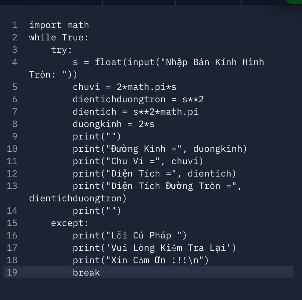 cout<<"Dien tich hinh tron la: "<<dientich<<endl;