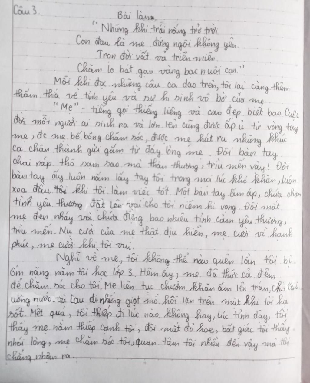 Chích Bông là người tôi yêu quý nhất, khâm phục nhất, em còn biết đi chợ, nấu cơm, làm thức ăn từ lúc năm tuổi. Được lớn lên mỗi ngày, được đồng hành cùng em trên mọi nẻo đường là niềm hạnh phúc lớn của tôi. Em hay bị đau lạ lắm, tôi luôn cầu mong em mạnh khỏe để làm được nhiều việc tốt, giúp ích cho tất cả mọi người, mong một ngày nào đó ông nội của tôi hiểu được: Con gái không vô tích sự!