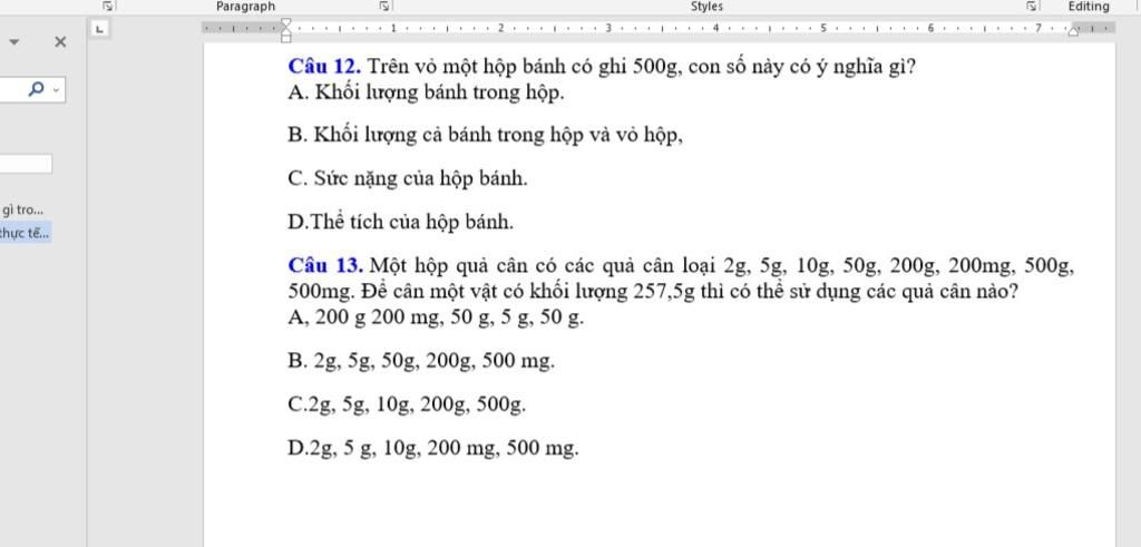 Câu 12. Trên vỏ một hộp bánh có ghi 500g, con số này có ý nghĩa gì?