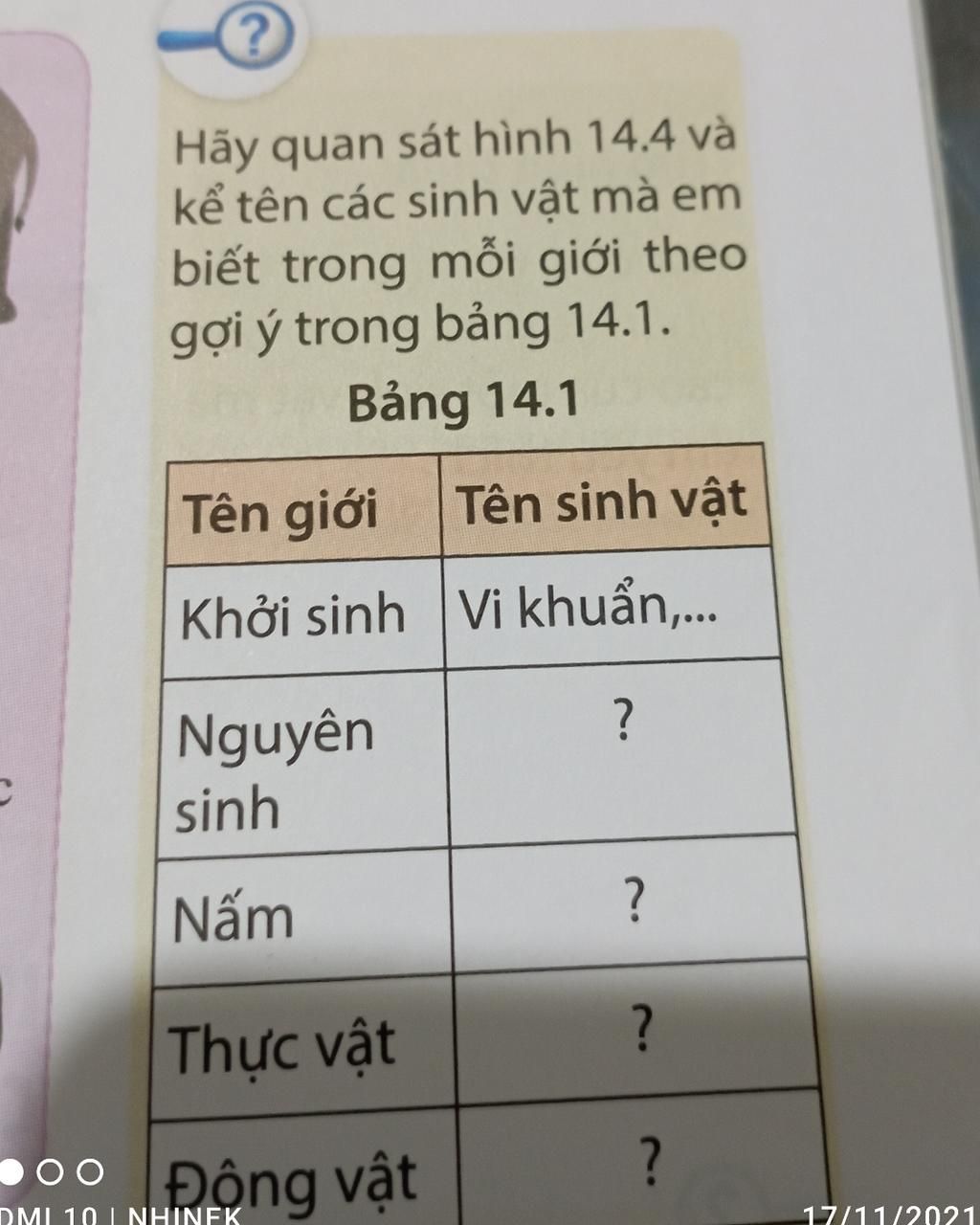 Khởi sinh: vi khuẩn lam, vi khuẩn.