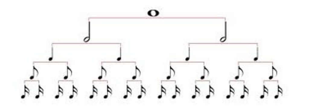 Các ký hiệu trường độ âm nhạc: Nốt tròn (4 nhịp), nốt trắng (2 nhịp), nốt đen (1 nhịp), nốt móc đơn (1/2 nhịp), nốt móc kép (1/4 nhịp), nốt móc ba (1/8 nhịp), nốt móc tư (1/16 nhịp), ....