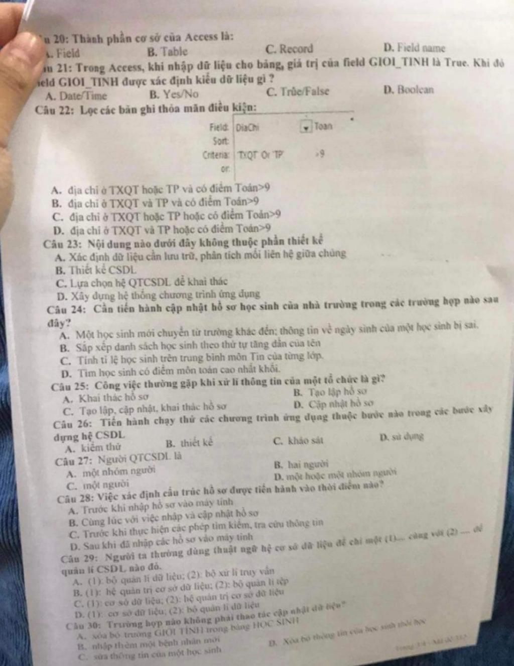 Câu 22: Lọc các bản ghi thỏa mãn điều kiện: