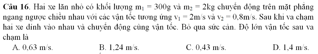 \Rightarrow 0,3.2 + 2.\left( { - 0,8} \right) = \left( {0,3 + 2} \right)v\\