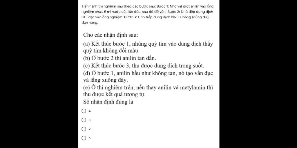 Phản ứng tạo ra anilin là chất ít tan trong nước, tan tốt trong etanol và benzen nên dung dịch phân hai lớp