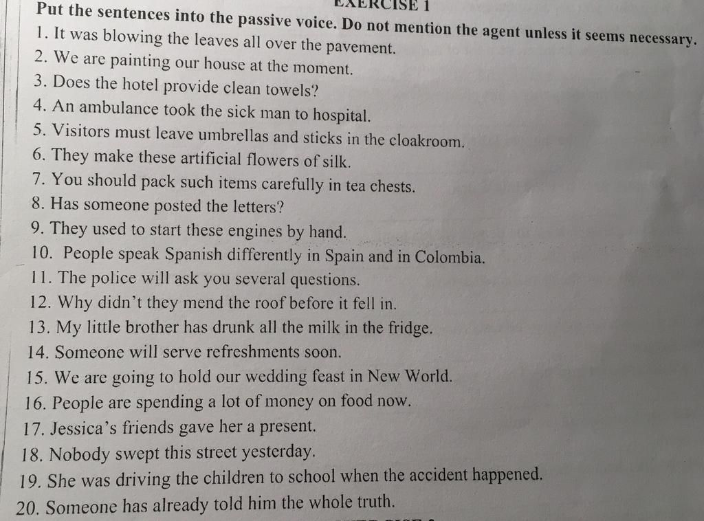 Lưu ý: Tân ngữ by O chỉ chung chung, không xác định có thể được lược bỏ