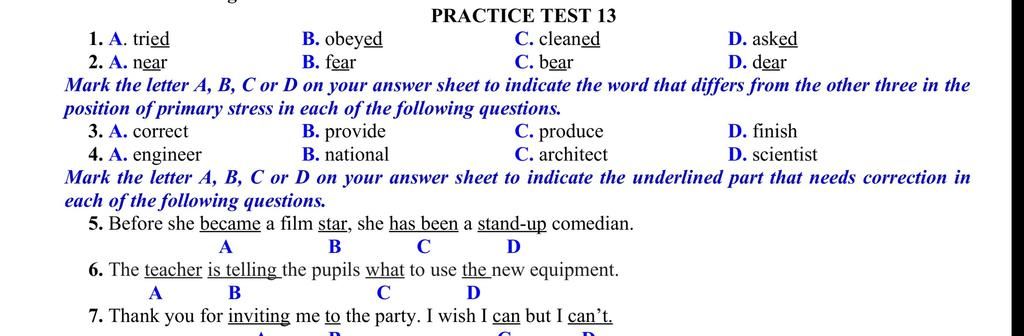 Ba đ/a còn lại nhấn vào trọng âm nhất