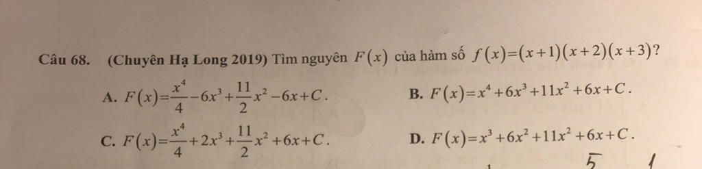 $\to F(x)=\dfrac{x^4}{4}+2x^3+\dfrac{11x^2}{2}+6x+C$