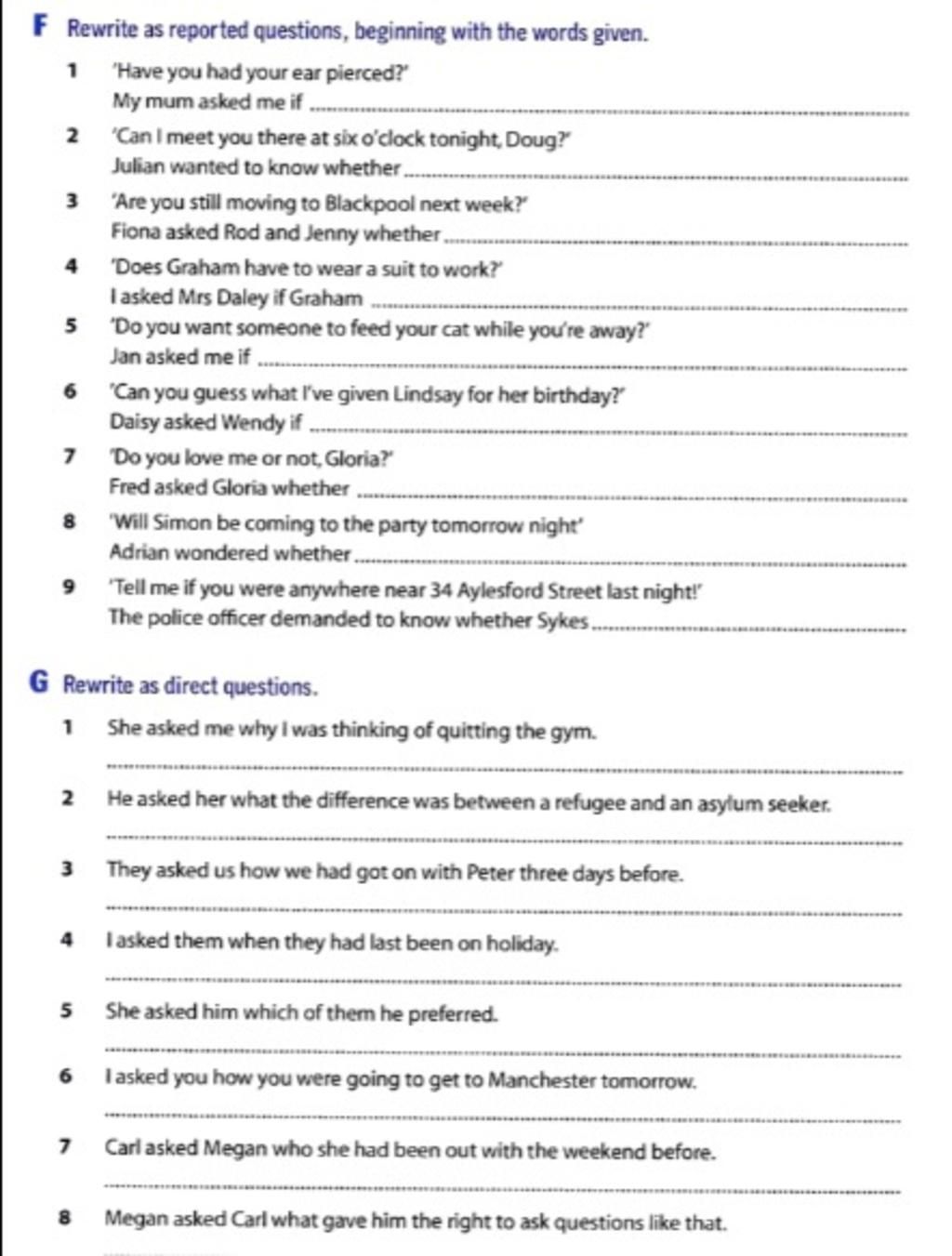 - Yes/No question: S + V + (O) + if/whether + clause.
