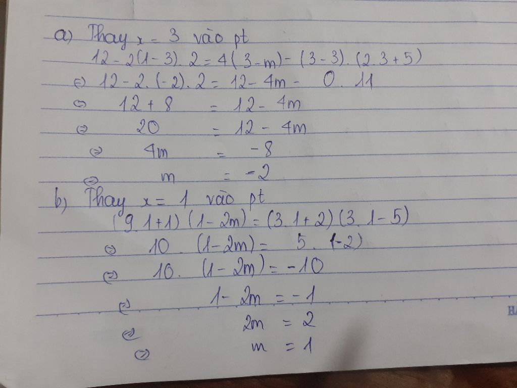 a. Thay x = 3 vào phương trình đã cho, ta được: