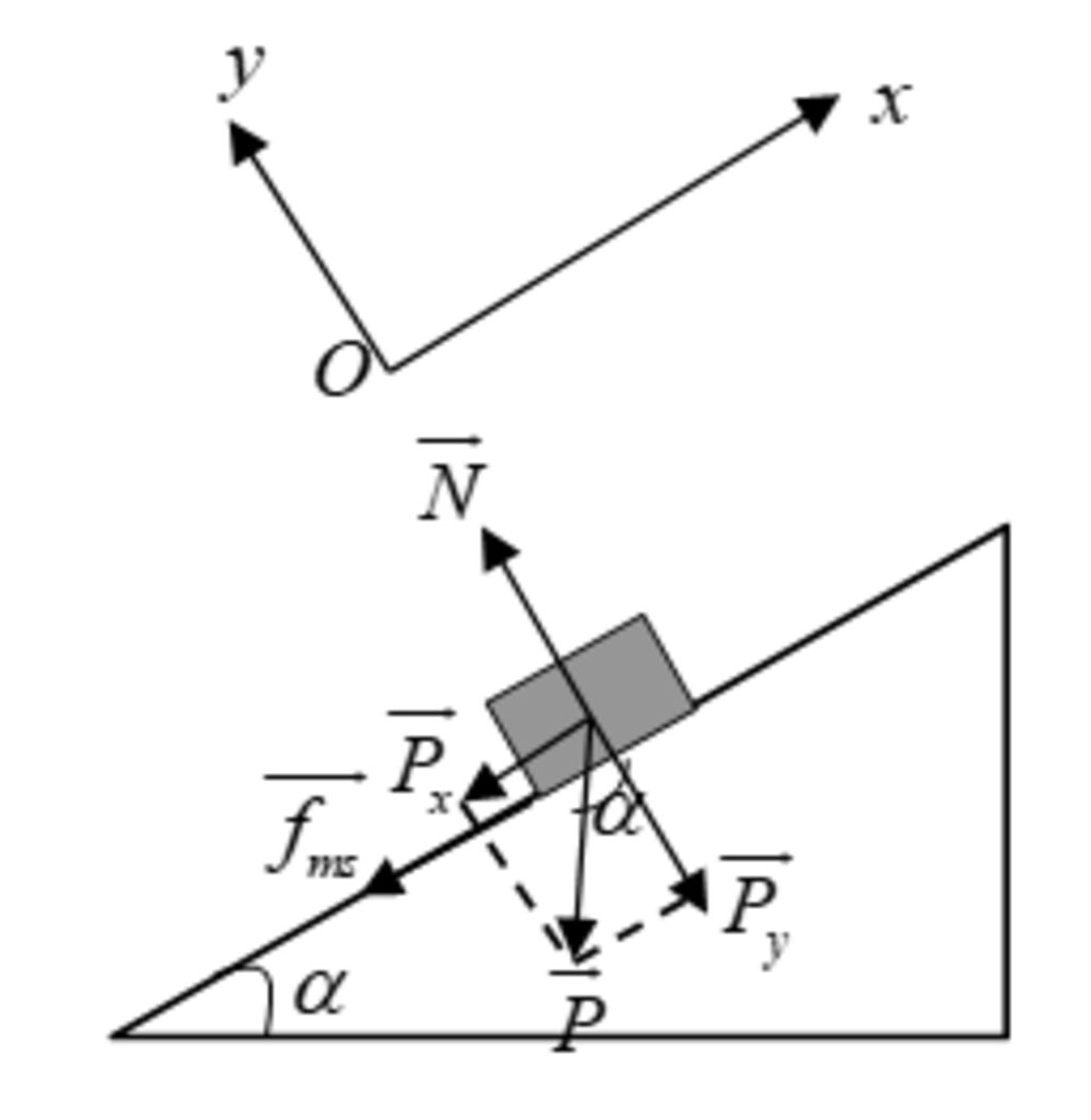 \(\overrightarrow{N}+\overrightarrow{P}+{{\overrightarrow{f}}_{ms}}=m\overrightarrow{a}\)
