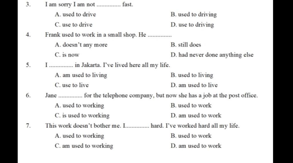 cấu trúc : be used to sth/ Ving : quen với điều gì / quen làm gì.