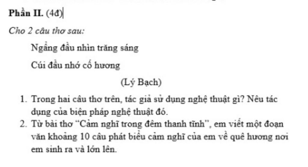 Biện pháp NT "Ngẩng đầu nhìn trăng sáng Cúi đầu nhớ cố hương"