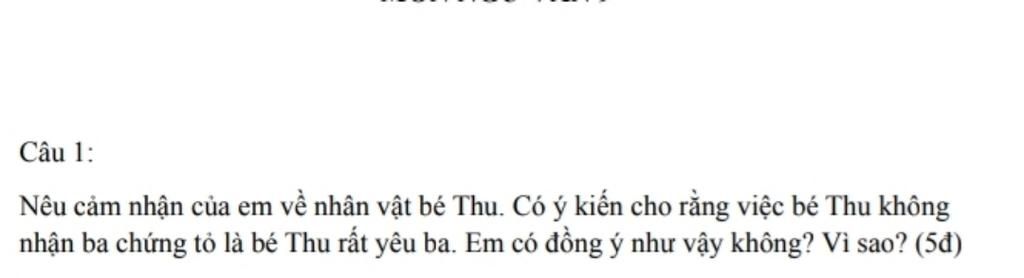 - Cảm nhận của em về bé Thu: Thu là một em bé hồn nhiên, ngây thơ, có phần bướng bỉnh, cương trực và có tình yêu cha tha thiết
