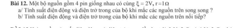 a) Suất điện động của bộ khi mắc các nguồn song song là: