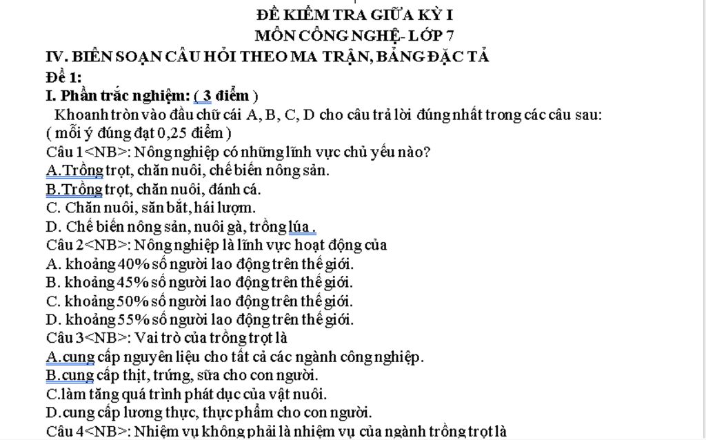Câu 1: (2 điểm) Nêu mục đích và phương pháp xử lí hạt giống?