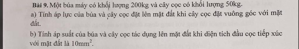 $\\$ `b)` Áp suất của búa máy và cọc tác dụng lên mặt đất là :