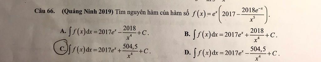 `→F(x)=\int(2017e^x - 2018/x^5)dx`