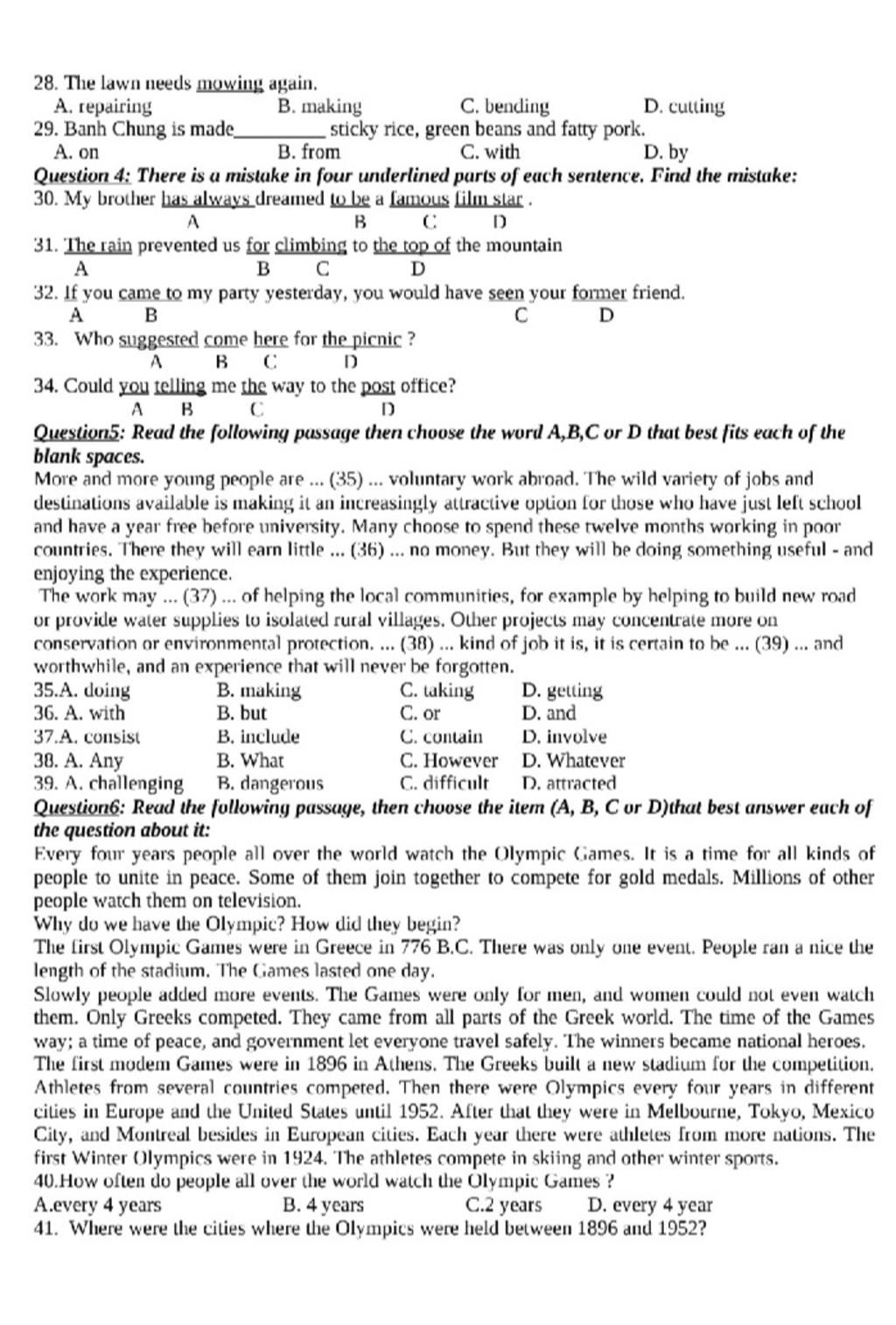 Question 4: There is a mistake in four underlined parts of each sentence. Find the mistake:
