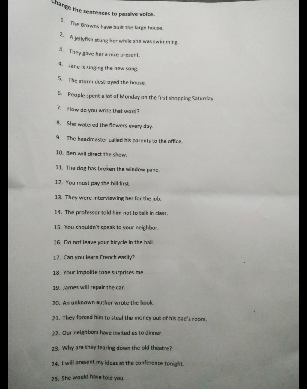 Change the sentences to passive voice.