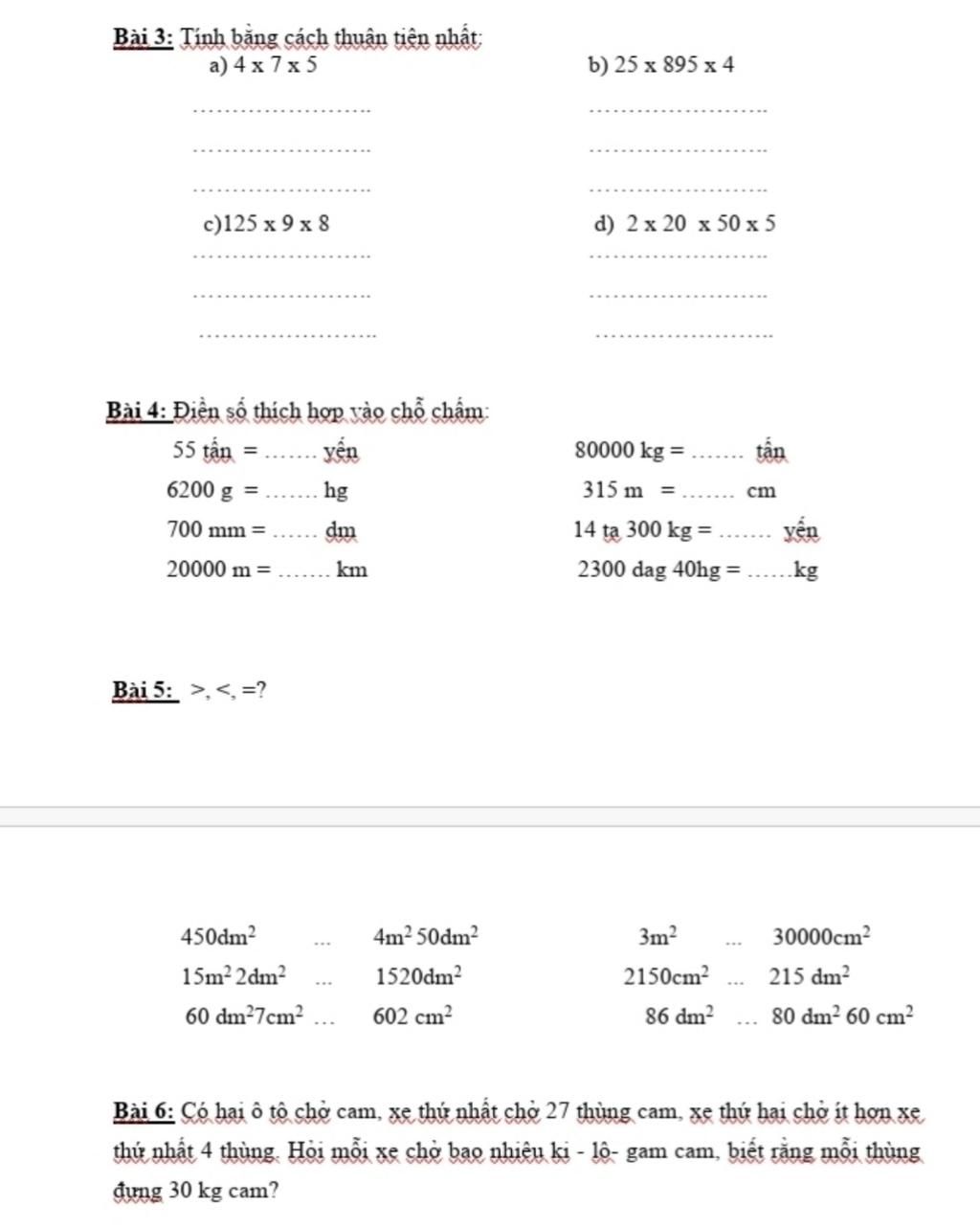 55 tấn = 5500 yến 80000 kg = 80 tấn