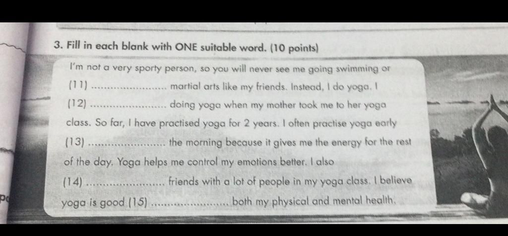 3. Fill in each blank with ONE suitable word. (10 points)
