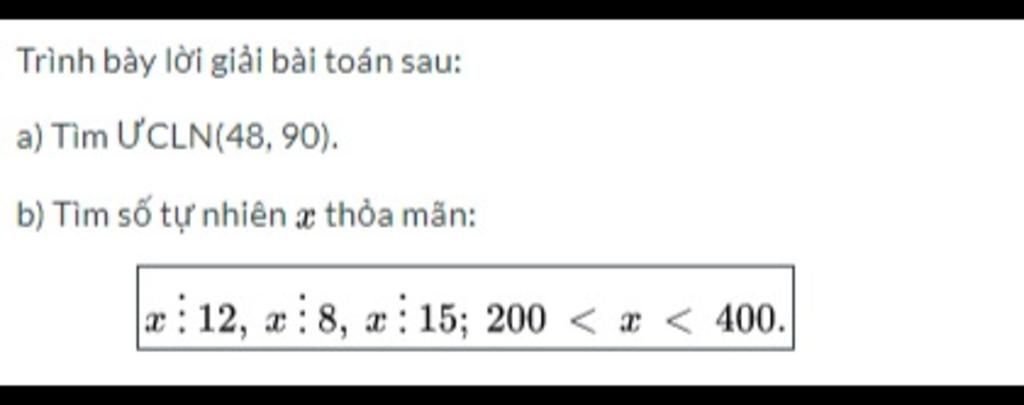 b)Vì x chia hết cho 12;8;15 nên x là bội của 12;8;15.