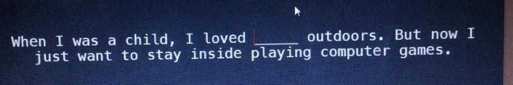 When I was a child , I loved stay outdoors. But now I just want to stay inside playing computer games.
