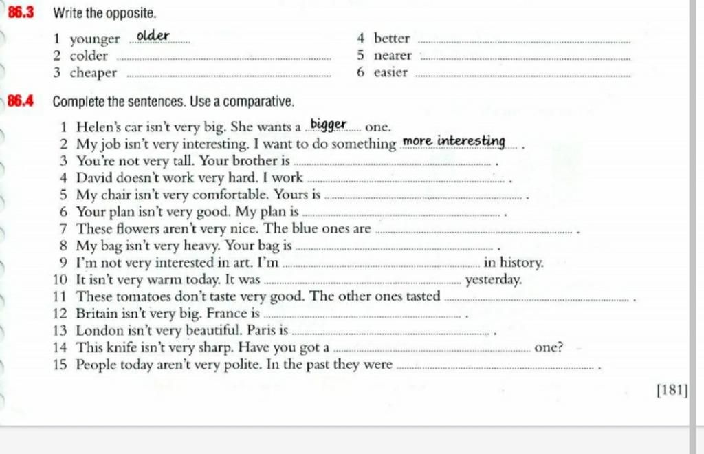 86.4 Complete the sentences. Use a comparative.