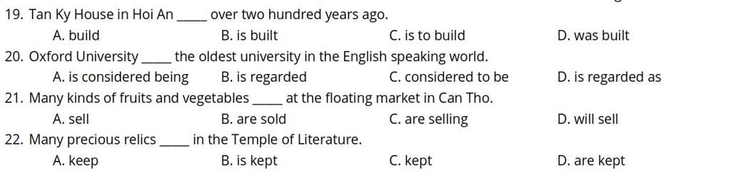 Tan Ky House là vật được tác động (build: xây) => Dùng thì bị động