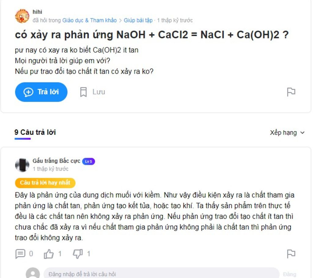 Phản ứng này xảy ra đc nhé bạn, mk đã lm thử rồi. NaOH và CaCl2 là dd ko màu khi cho vào nhau tạo ra dd bị vẩn đục trắng nhé