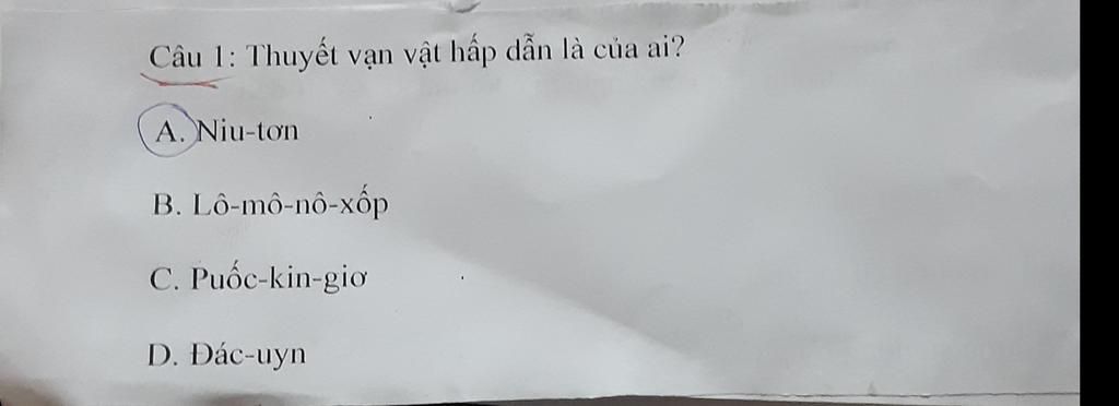 `->`Định luật thuyết vạn vất hấp dẫn là của Niu-tơn