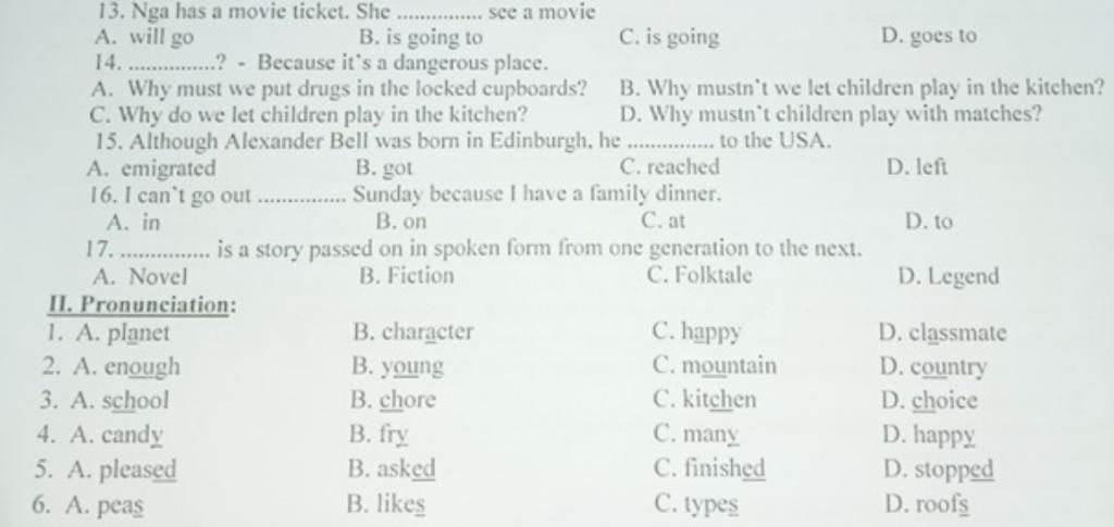 15. A ( Sinh ra ở Edi ... nhưng lại "di cư = emigrate " đến Mĩ )