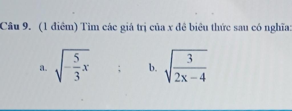 Vậy `x<=0` thì `\sqrt{-5/3 x}` có nghĩa