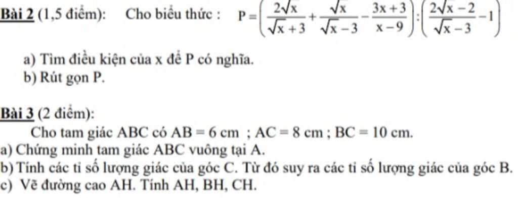 Bài 3 (2 điểm):