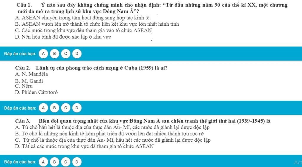 2. D ( A: lãnh đạo Nam Phi; B: Ấn Độ )