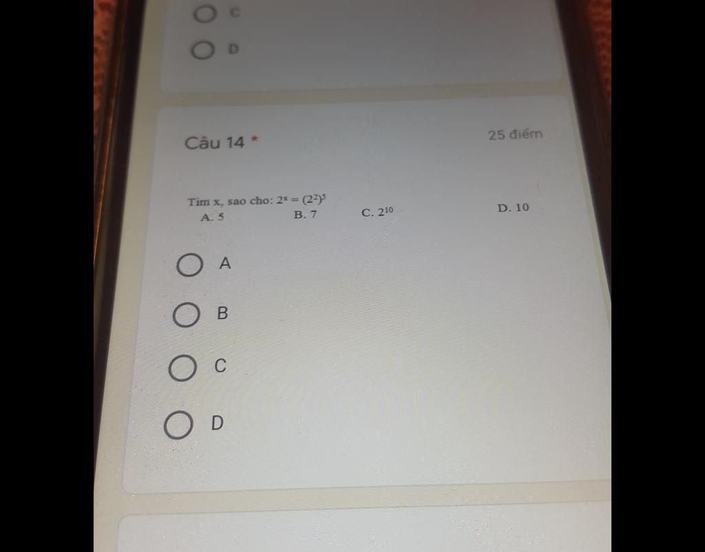 `2^x = 2^10`