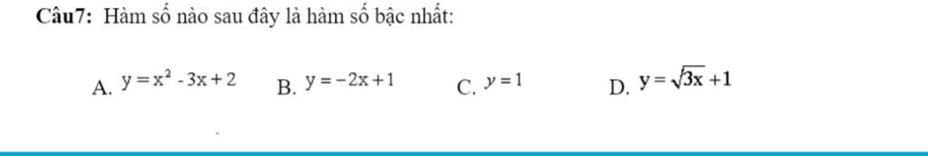 y=-2x + 1 là hsbn vì nó có đầy đủ tính chất của hsbn là y=ax + b với a= -2